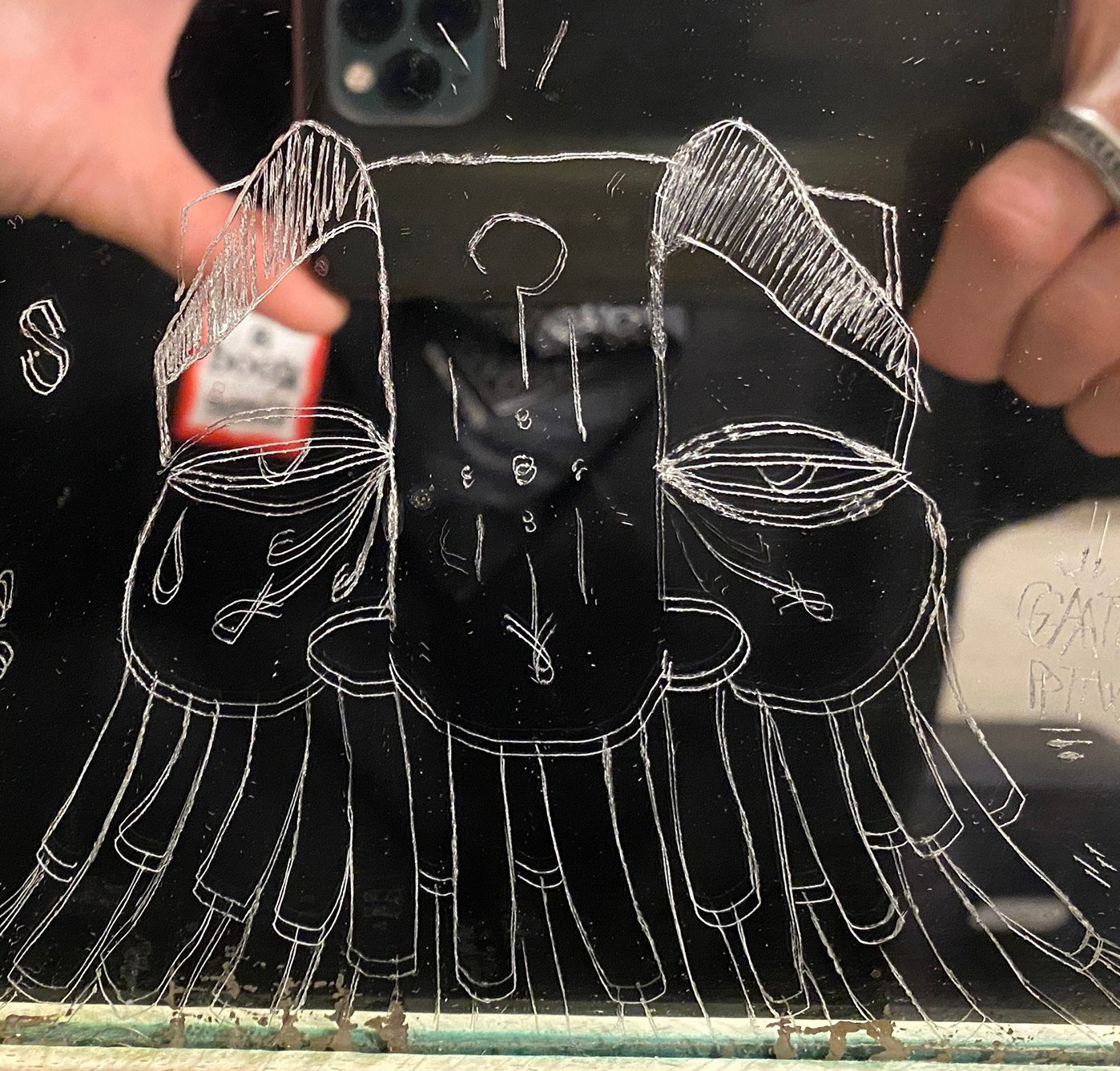 This is a photo zine documenting scribed mirrors, one of the most immediate and irreversible forms of tagging. Collected across years and locations, these images and written observations capture names and damage left behind in transitional spaces.